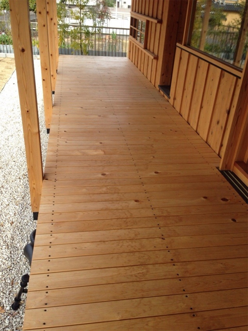施工箇所 : ウッドデッキ、駐車場、アプローチ、門柱、カーポート、植栽 【工期】1ヶ月 【ご家族構成】大人2名、子供1名 天然木を使用し、ウッドデッキを施工いたしました。 デッキ部分が広い為、お子様にものびのびと遊んでいただけます。