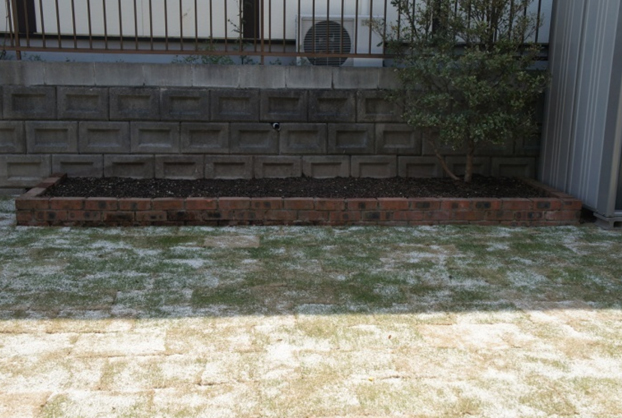 もともと畑だった場所を整地し、姫高麗芝を貼りました。 全体的にすっきりとしたお庭に仕上がりました。