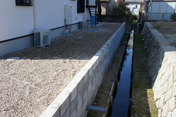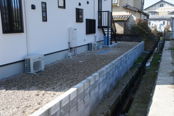 土留めブロック工事、アスファルト工事、側溝工事、ガレージ工事