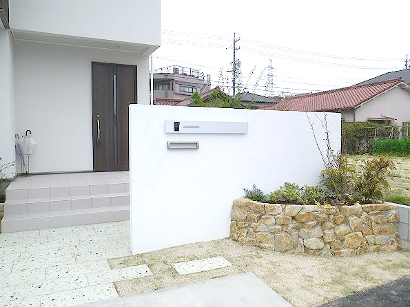 自然石をふんだんに使い、緑豊かな玄関周りに仕上げました。