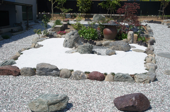 庭の中央には、施主様が寒水石を自ら敷かれました。
