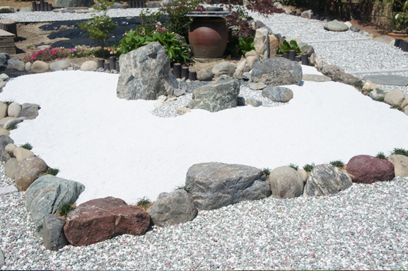 たくさんの石と景石で庭に奥行をだせるようにバランスよく並べてみました。