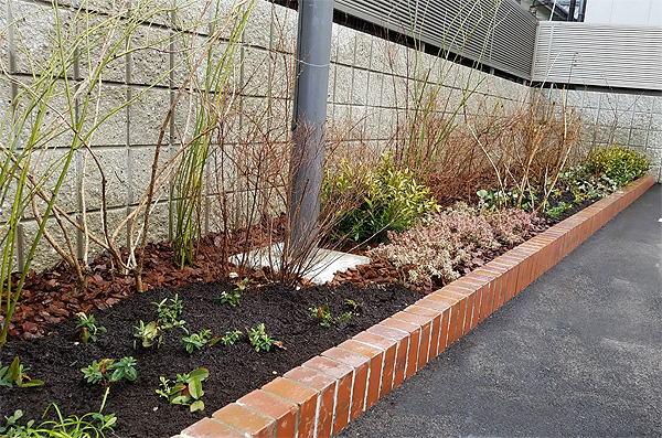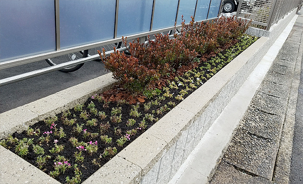 【施工箇所】植栽工事 【工期】2日間 クリニックの駐車場の周りのスペースに低木や地被を植栽させていただきました。 ガクアジサイやコデマリ、サツキ、ユキヤナギなどの落葉低木とともに、 アバカンサスやヒメクチナシやシバザクラなどの色彩豊かなグランドカバーをあしらいました。 ひかえめな花のアクセントで、通りを行く人の目にも止まっており、施主様にもご満足いただけた様子。