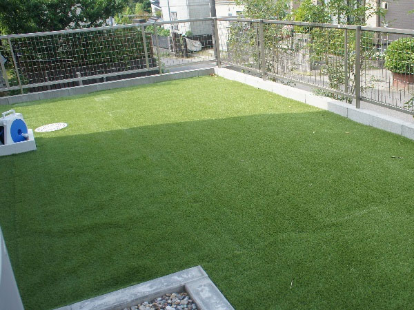 踏み心地抜群のパイルの長さの人工芝を敷きました。