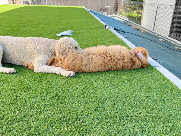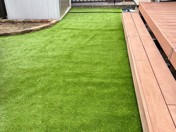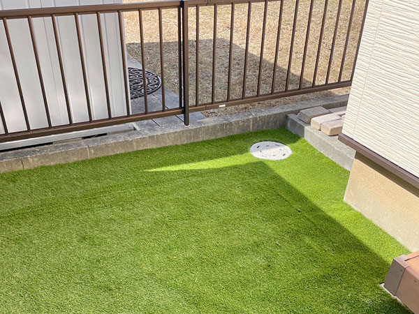 【施工箇所】人工芝・花壇 瀬戸市のお客様より、お庭のリフォームをご依頼いただきました。 人工芝を敷いたことで、庭も明るくなり、わんちゃんも楽しく駆け回れるようになり、花壇の季節の花も楽しめる庭に変身しました。