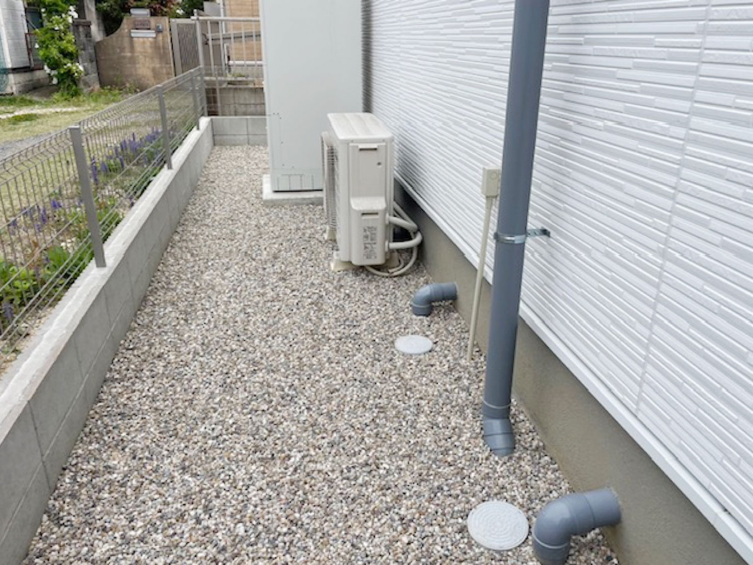 防草シートを敷き、砂利で仕上げました。